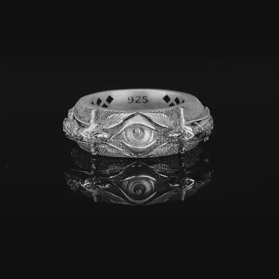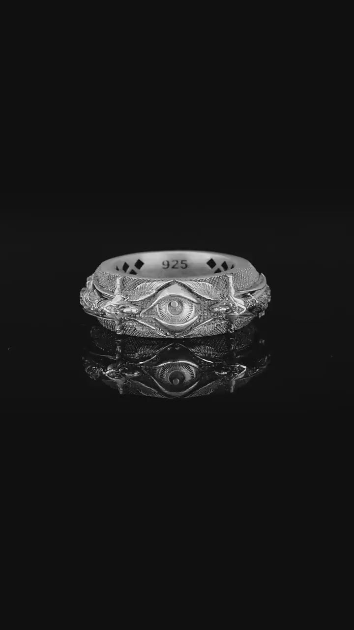 Channel divine strength and protection with this handcrafted Archangel Michael Ring in solid oxidized 925 sterling silver. Featuring the all-seeing eye and angelic wings, it symbolizes courage, faith, and heavenly guardianship — a timeless talisman of light and power.