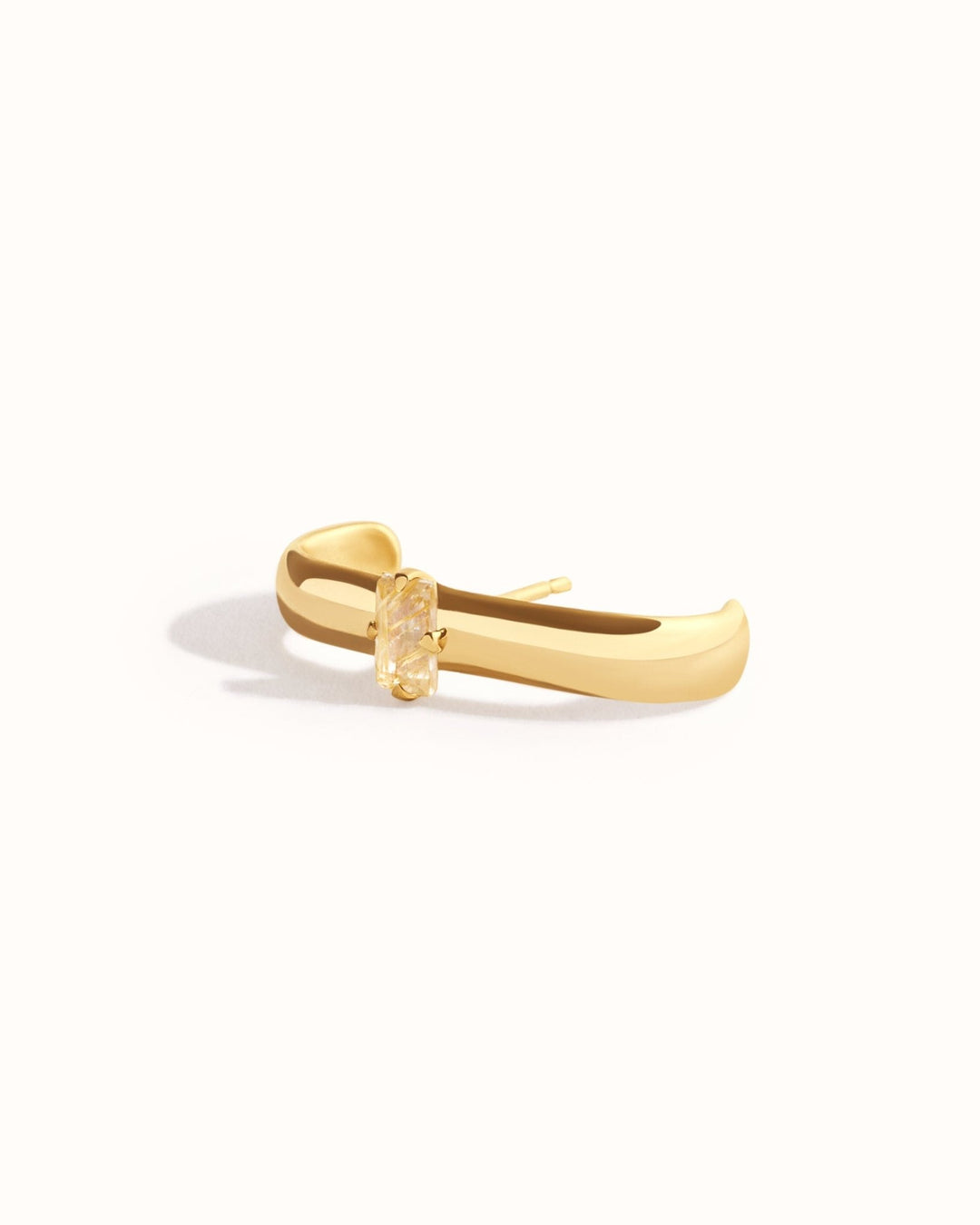 Make a statement with the Elara Wide Ear Suspender Earrings, crafted from premium 925 sterling silver with a durable stainless steel back for lasting elegance. These avant-garde earrings gracefully trace the curve of your ear, showcasing a radiant golden rutilated quartz gemstone that shimmers with natural beauty. Perfect for those who seek modern sophistication with a touch of boldness.
