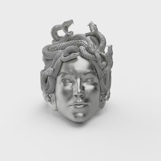 Unleash your dark side with this striking Medusa ring, crafted in 925 sterling silver. Featuring a highly detailed design of Medusa's face surrounded by intricately sculpted serpents, this piece captures the fierce beauty of Greek mythology. A bold symbol of protection and power, this statement ring is perfect for lovers of gothic style, mythological art, and unique handcrafted jewelry.
