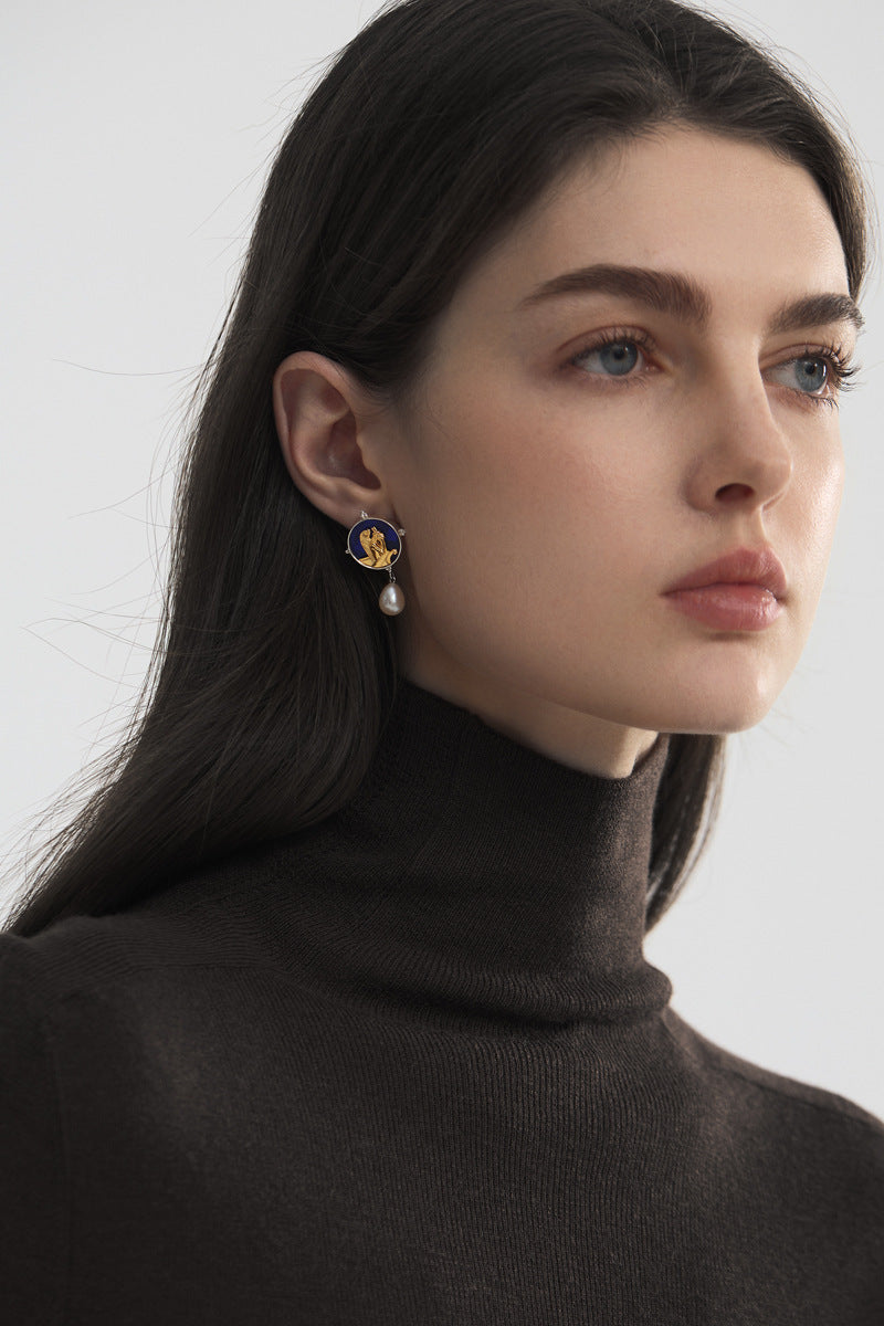 Channel the mysterious elegance of Parisian nights with the Night Stryge Earrings. Inspired by the iconic Stryge gargoyle perched atop Notre Dame Cathedral, these handcrafted earrings feature detailed silver 925 reliefs set against deep midnight blue glass. A luminous pearl drop adds a touch of ethereal grace. Bold, symbolic, and steeped in history—perfect for those who wear art with intention.